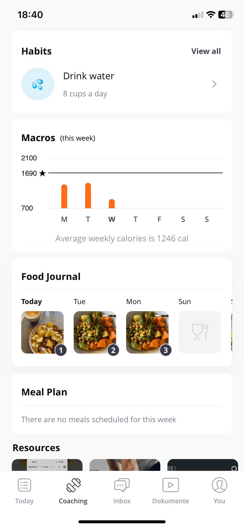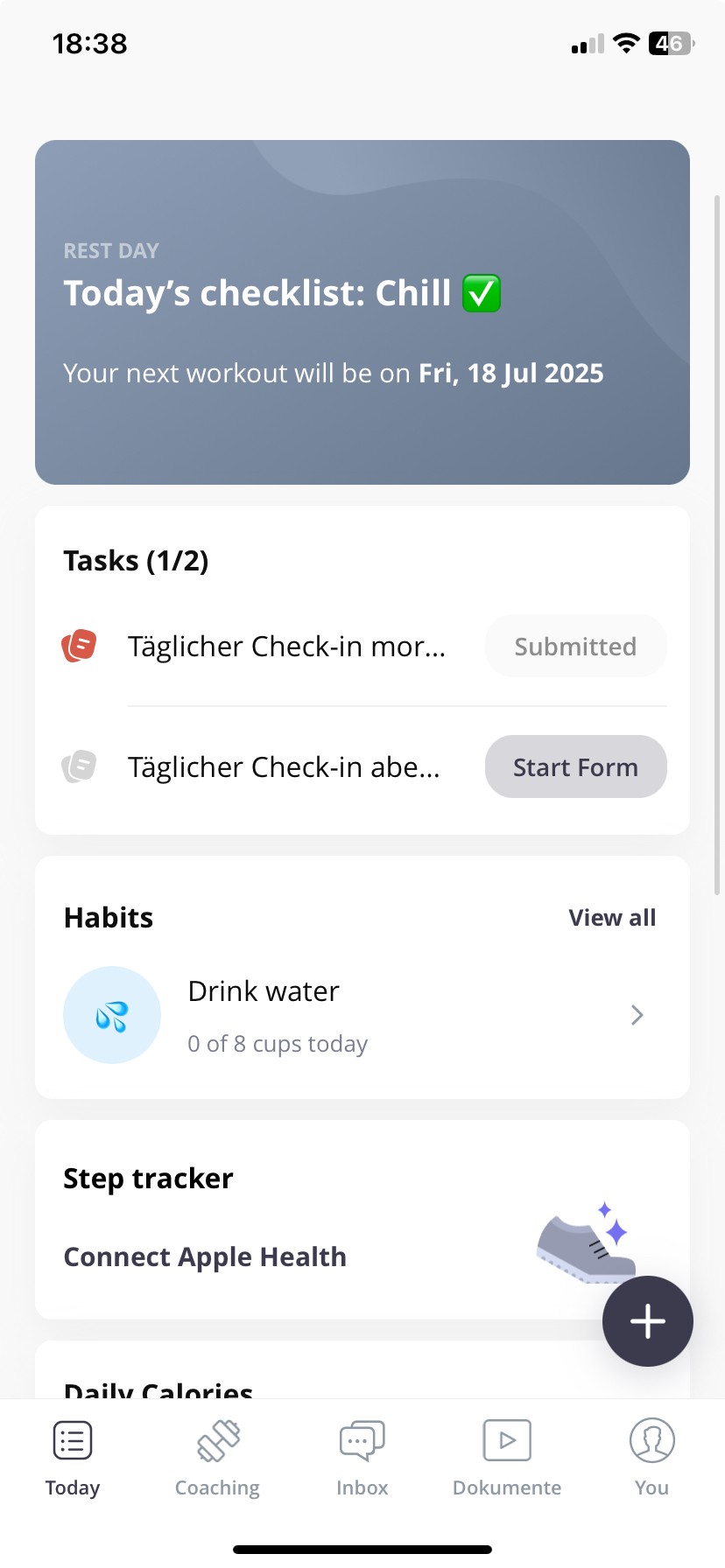 Hier findest du deine Pläne, Fortschritte, Check-In-Bereich und direkte Coach-Kommunikation.